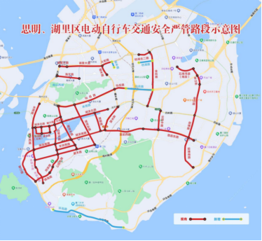 图1:思明区、湖里区电动自行车交通安全严管路段示意图