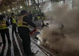 17时33分,安保队员发现电动车自燃,立即报告指挥中心。指挥中心接报后,迅速呼叫校区巡逻岗和附近岗位安保人员前往现场支援。17时35分,现场安保使用灭火器成功扑灭明火。由于电动车仍持续冒出浓烟,安保人员再次使用灭火器进行二次喷射,确保无复燃风险。确认无复燃风险后,巡逻岗队员将自燃电动车推至南门停车场空旷处,进行隔离处理。经调查核实,此次起火原因为电动车电路故障引发的自燃,电动车的车主为机械学院的学生陆某,该电动车购自校外的 “电摩联盟” 门店,且有两位同院同学一同在此店购买。基于此情况,安保人员迅速行动,当即将另外两辆来自相同购买渠道的电动车转移至南门停车场的空旷区域,并组织专业人员对其进行周密细致的安全检查,全力排查可能存在的各类隐患,坚决防止类似安全问题再次发生。