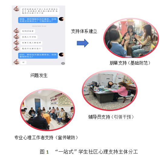 从本案例可见,由于多种情况的叠加,导致高校学生出现严重的精神压力,包括焦虑、绝望等症状,这些心理危机诱发了安全稳定。因此,应细化参与主体的责任落实,协同破解当前危机处境,确保社区安全有序。“一站式”学生社区心理支持体系建设的主体包含朋辈、辅导员、专业心理健康工作者等。