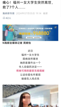 在悲痛中,“星光”同学的家长展现出令人敬佩的大爱精神,决定捐赠其遗体器官,以挽救他人的生命。这一无私的决定不仅体现了人道主义精神,还为社会传递了正能量。“星光”同学的遗体捐献事迹得到了省市媒体的广泛报道,她的大爱精神感动了无数人。整个事件中,校保卫处、学院及家长以理性和尊重的态度共同处理了这一悲痛事件,校方的积极处置和人文关怀赢得了家长的感谢,为学校树立了积极的形象,让这场突如其来的悲剧最终以一种特殊的方式画上了句号。