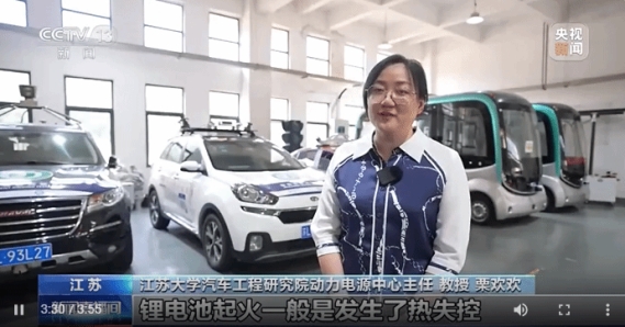央视采访江苏大学栗欢欢教授对锂电池起火机理、内部链式反应进程等进行了讲解