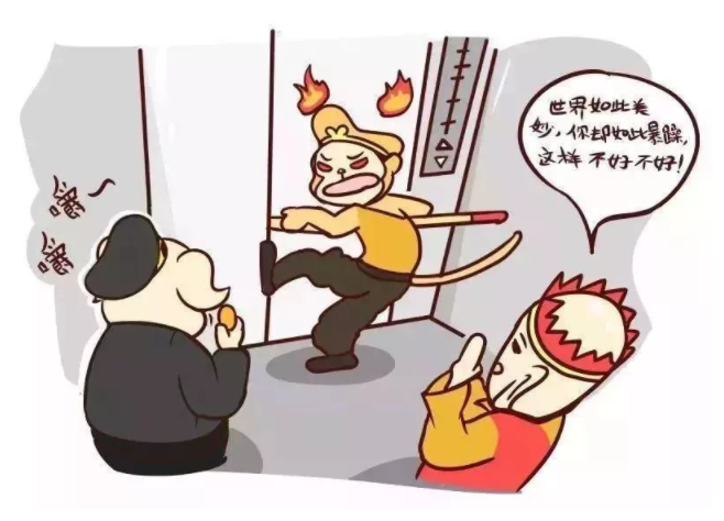 3.不要再电梯内乱蹦乱跳,上下电梯不要相互推挤。