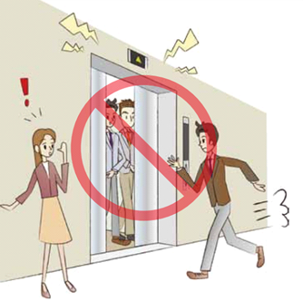 2.电梯天花板若有紧急出口,也不要爬出去。出口板一旦打开,安全开关就使电梯刹住不动。但如果出口板意外关上,电梯就可能突然开动令人失去平衡,在漆黑的电梯槽里,可能被电梯的缆索绊倒,或因踩到油垢而滑倒,从电梯顶上掉下去。